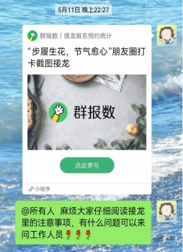 图20 在活动群中发布朋友圈打卡接龙的通知 |