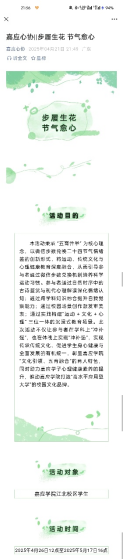 “步履生花,节气愈心”活动秉承“五育并举”为核心理念,以微信步数兑换二十四节气情绪签的创新形式,将运动、传统文化与心理健康教育深度融合,从而引导参与者通过微信步数兑换机制培养科学运动习惯。参与者通过自然时序中的古诗鉴赏与现代心理解读深化情绪认知;通过跨学科知识融合提升自我觉察能力;通过校园场景创作激发审美表;通过实践构建“运动 + 文化 + 心理” 三位一体的沉浸式教育场景。此次活动不仅让参与者在学科上“冲补强”,也在体魄上实现“冲补强”,实现传承传统文化、促进学生身心健康与全面发展的有机统一,彰显了嘉应学院“文化引领、五育融合”的育人特色,同时助力嘉应学子心理健康素养的提升,推动嘉应学院打造“高水平应用型大学”的校园文化品牌。