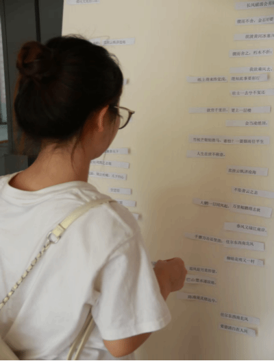 (1)活动形式:本次活动特设诗词拼贴墙,将经典诗句拆分为上下联,供参与者进行匹配与重组。